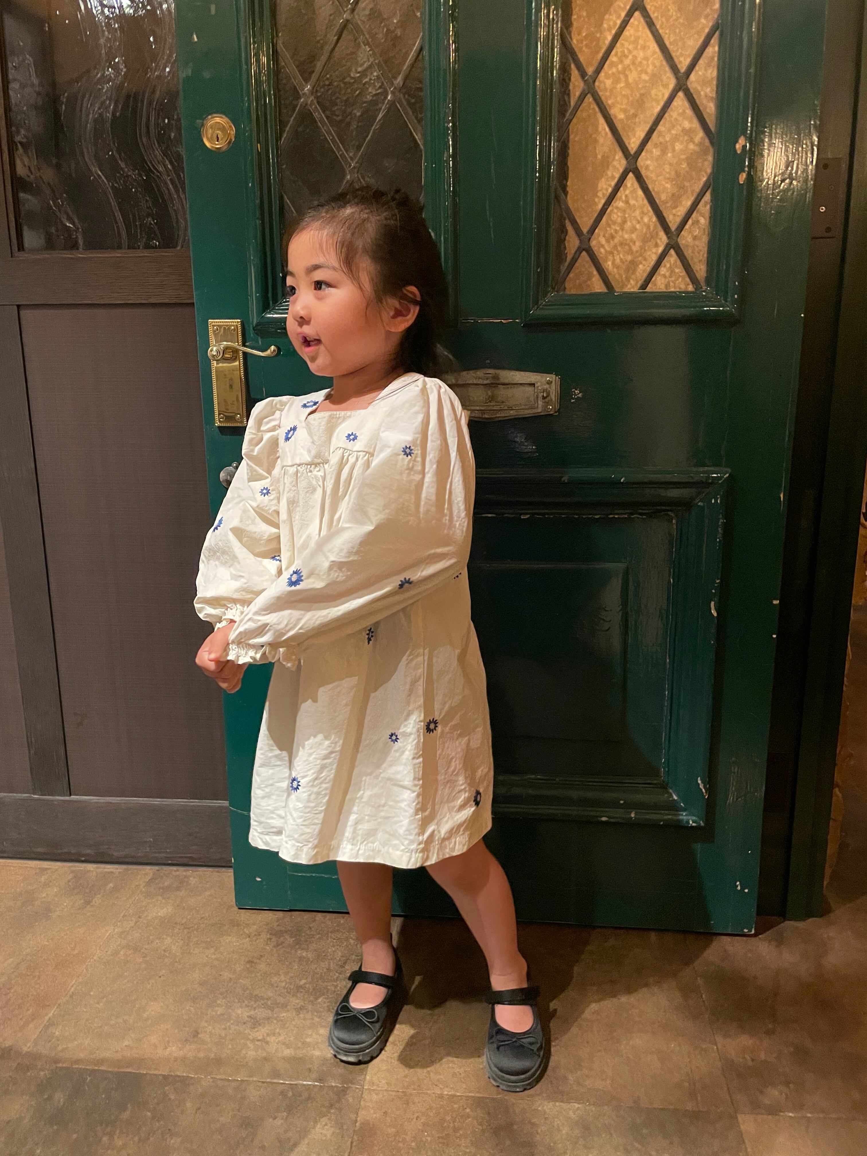 ぽわんとした袖のお花ワンピース