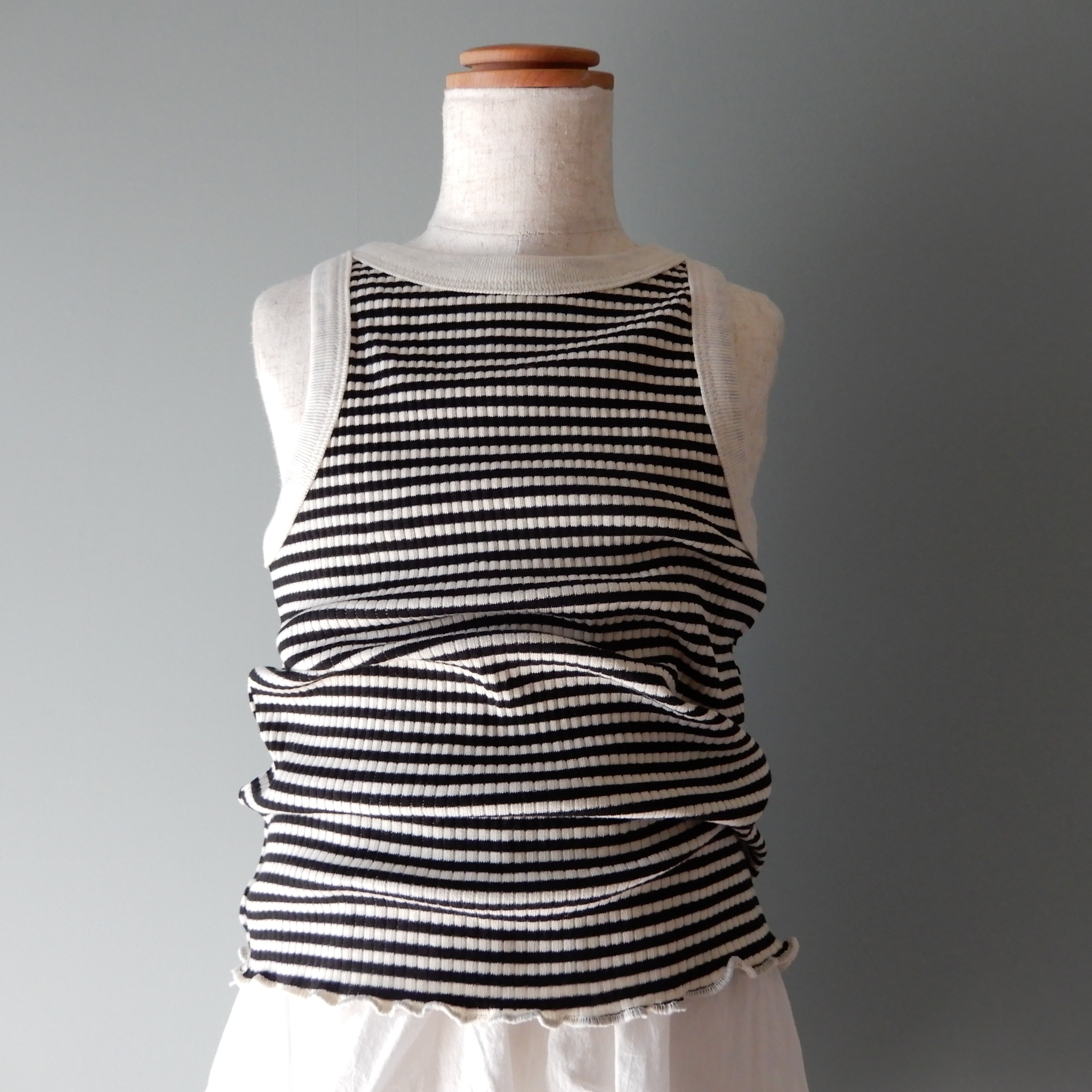 裾のメロウが可愛いボーダータンクトップ